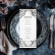 Elevate your gothic wedding with a Victorian-inspired wedding menu that exudes timeless elegance and mystery. Designed to resemble an antique book binding, this stunning design features intricate a black and white lacey filigree, evoking the charm of a bygone era. Let your love story unfold with a program as unforgettable as your day. Created by Simply Farmhouse Press.
