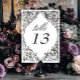 Elevate your gothic wedding with a Victorian-inspired wedding table number that exudes timeless elegance and mystery. Designed to resemble an antique book binding, this stunning design features intricate a black and white lacey filigree, evoking the charm of a bygone era. Let your love story unfold with a table number card as unforgettable as your day. Created by Simply Farmhouse Press.