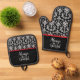 Victorian Black and White Damask Pattern Oven Mitt & Pot Holder Set