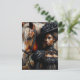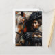 Postcard features a painting of a black woman in Victorian-style fashion, next to a brown and white horse. Afro-Victorian or afro-goth aesthetic with dark-skinned African American lady or other African diaspora female in elegant vintage clothing. Neutral colour palette with browns, creams, black.