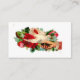Victorian reproduction calling card with a colourful picture of a ladies hand red roses, a dove and the words, "May joy be around you.".