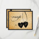 This charming wedding invitation rsvp features the silhouette of a sumptuous chandelier against a vintage damask background. An ornate banner unfurls across the top of a charming vintage frame contains the rsvp wording. On the front of the card, beside a script "rsvp" an opened heart locket hangs delicately from a ribbon, bearing another reminder of the reply by date.