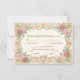 Transport your guests to a fairytale romance with this vintage-inspired response card, featuring antique details and a formal request for their attendance.This design features a sophisticated flat-printed simulation of an antique aesthetic. The background is a printed effect resembling aged cream parchment paper, providing a warm, nostalgic base. Framing the text is an elaborate, symmetrical baroque scrollwork border in a printed faux gold tone, accented by watercolor illustrations of blush pink roses and soft sage green leafy vines. A delicate cherub illustration anchors the bottom center, reinforcing the classic Victorian influence. The typography combines an elegant calligraphy script for names with a traditional serif font for the details.This is a flat printed image with a faux gold foil and parchment texture effect, not actual raised foil or vellum material.