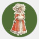 A paper doll victorian girl dressed in a beautiful red winter coat, hat and white fur hand muff. A charming vintage image.