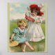 These sweet little girls are taking a break to soak their hot feet. This is a beautiful illustration from the late 1800's, when children played in lovely clothing in the garden.