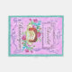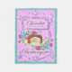 A vintage pastry shop sign featuring a chocolate cake and flowers. In colours of pink and purple and teal.