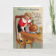 Vintage / Victorian Christmas greeting card. Adorable child admiring a large plum pudding! Christmas Greeting! A day of joy, a year of pleasure, Smiles without stint, Mirth without measure!