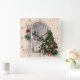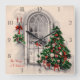 Holiday clock with a vintage Christmas window scene of the Christmas tree and lights shining at night by a beautiful window.