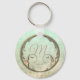 Victorian script and floral scroll keychain in colours of mint green, cream and gold. Embellished with a round frame for your initial.