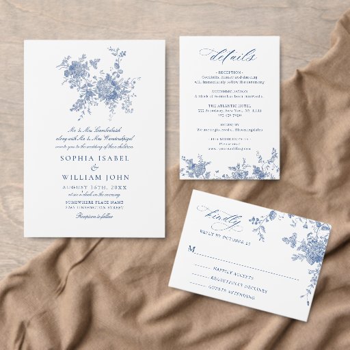 Vintage Blue French Garden Flowers Wedding SetDesigned by Ellen L