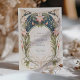Embrace the romantic charm of the Victorian era with this delicately crafted wedding invitation. The design is a soft pastel dreamscape, featuring a blend of blush pink, sage green, and navy blue, accentuated by gentle touches of peach and cream. The front of the invitation showcases an elegant floral motif that embraces a central, gold-tone monogram, reflecting the intertwining of two lives. Turning to the back, the invitation details are framed by a lush arrangement of blooms and botanicals, reminiscent of a serene English garden, all set against a vintage parchment background. The flowing Art Nouveau-inspired linework and the whisper of pastel hues on the high-quality paper make this invitation a timeless announcement for your special day.
