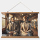 Step back in time with this stunning Victorian-inspired wall tapestry, featuring an elegant couple aboard a vintage train. Dressed in sophisticated 19th-century attire, the gentleman and lady share a moment of quiet contemplation as golden sunlight filters through the carriage windows, highlighting the intricate details of their refined clothing and polished decor.