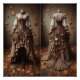This updated Victorian era style fashion design was inspired by autumn with falling leaves and tones of dusky browns. This fashion design is a vintage fashion updated with steampunk elegance and Victorian beauty with this poster.