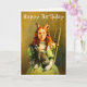 This card is illustrated with a young Victorian Fox eared girl and her small dog. Above runs the text Happy Birthday. Surreal