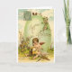 Vintage / Victorian French Easter greeting card. Adorable Cupid sharpening his arrows and sitting in front of a large, ornate Easter Egg! Joyeuses Pâques! Lovely French Easter card!