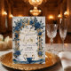 Set a sophisticated tone for your special day with this romantic design featuring watercolor swans, dusty blue florals, and elegant faux gold accents.