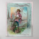 Victorian Girl on Fence With Easter Rabbits Poster