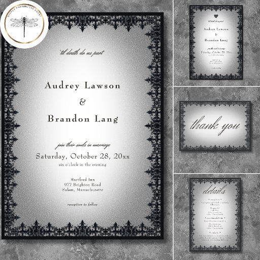 Elevate your gothic wedding with a Victorian-inspired wedding response card with dinner choices that exudes timeless elegance and mystery. Designed to replicate an antique vintage feel, this stunning design features delicate black wrought iron style gothic border on a vintage, aged white background, evoking the charm of a bygone era. Let your love story unfold with an invitation as unforgettable as your day. Created by Simply Farmhouse Press. For custom pieces or to request a product not in our store, please email simplyfarmhousepress@gmail.com.