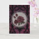 A reddish-purple rose in a lace frame, on a burgundy and black damask background makes a beautiful Gothic-themed birthday card. Dark and elegant, very feminine.