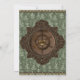 Embark on a steampunk soiree, and set the stage for an unforgettable celebration with these unique announcements, where vintage charm meets whimsical adventure. The design features a distinct Victorian steampunk look, consisting of green floral wallpaper background, a wooden ship's wheel, gold wedding rings, and rows of gold metal buttons on the top and bottom of the card adding a touch of playful whimsy and vintage flair. It also features a canvas of vintage brown paper parchment beneath the personalised text for a truly antique, historical vibe.