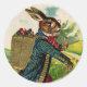 Victorian Hiking Easter Rabbit with Pipe Classic Round Sticker