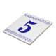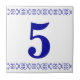 Victorian House Number Tile - Blue on white with a culy cue border.