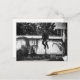 This postcard features a vintage Victorian era photograph of a well-dressed Victorian gentleman jumping in his back yard.