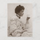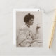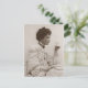 Victorian lady drinking tea, black and white photo postcard