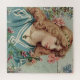 This great Victorian image features a young woman with long hair and a blue blouse who has pink and blue flowers around her and in her hair. Use this design for any occasion.