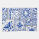 Seamless patchwork tile with Victorian motives. Majolica pottery tile, blue and white azulejo, original traditional Portuguese and Spain decor. Vintage