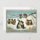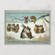 Victorian Mistletoe Animals Christmas Postcard. High quality, custom restored vintage Victorian image.