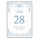 Victorian Ornate Dusty Blue Floral Wedding Table Number