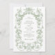 Victorian Ornate Floral Sage Green QR code Wedding Invitation