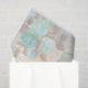 Teal, victorian paper fan with turquoise roses with burgundy and golden leaves making a upper left corner bouquet with the same turquoise roses and burgundy leaves making a right vertical border. Old gold, script, handwriting from a victorian era covers and makes this perfect for decoupage paper. Rustic chic style.