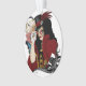 A black haired woman all in red victorian steampunk attire, Black tribal octopus, cloak, blue butterfly and pink rose