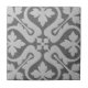 Originally red and white Victorian reproduction tile with a floral motif from a 1880s building in Sacramento, CA with a black and white filter applied.