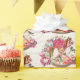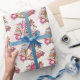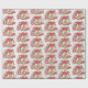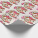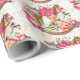 Delightful christmas wrapping paper. The background is a vintage style collage with a faded image of pink roses, green leaves and french writing. Layered over top