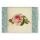 A beautiful Victorian rose illustration from a calling card is set on an aged background with an aqua or turquoise damask border. A beautiful shabby chic or vintage design for the feminine, yet elegant, girly girl!