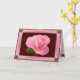 An elegant card for any occasion. It features one perfect pink rose, framed in pink, burgundy and gold detailing on a burgundy background.