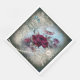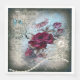 Lovely, vintage, red rose florals on newspaper print, featuring a faux pearl brooch and necklace, birdcage with teal bow to create a luxury, extravagant, shabby chic style for parties.