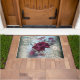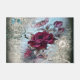 Lovely, vintage, red rose florals on newspaper print, featuring a faux pearl brooch and necklace, birdcage with teal bow to create a luxury, extravagant, shabby chic style for a stylish door.