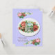 Custom wedding or baby announcement cards with vintage art of Victorian roses framed in pink and red roses and flowers on a white oval over a blue background. A hand is opening a window to reveal a sailboat on a romantic lake surrounded by trees and formal script letters for the bride and groom's name, wedding dates and location. Click Customise It to change fonts, background colours, card size and more, even save your design for later.