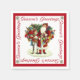 Old World charm with this Victorian Santa. This Christmas scene shows Santa Claus with a donkey laden with toys and Christmas tree. Typography border text says Season's Greetings in red.