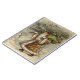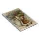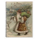 Vintage Santa Claus Carrying a Christmas Tree in the Snow - Since when does Santa actually bring a tree with him? This image is based on a vintage Christmas Card from the late 1800s. Back then, Santa didn't always wear red. In this Santa Claus illustration, St. Nick is wearing a warm brown suit, and his bag of goodies is green. Santa Claus is walking through the snow, with a Christmas tree on his back. The snowstorm looks cold! Early cards of vintage Santa showed Santa in brown, green and red suits in the late 1800s. This card says "A Merry Christmas" -- and even though our Santa is wearing a brown suit, after all, he deserves a bit of a wardrobe change now and then! He's carrying a bright new drum in his package. I wonder what else Santa has in his toy bag?