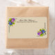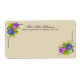 Victorian corner designs create an elegant return address labels. Pink and purple flowers provide a pretty accent in the lower left hand corner. Your name is written in a pretty script while your address is in a simpler font.