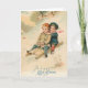 Vintage / Victorian Christmas greeting card. Adorable Victorian children riding their sled! A Happy Christmas!