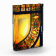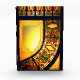 A beautiful antique, Victorian stained glass door look with a warm glow of gold amber, red, green and black.