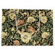 Victorian-style floral pattern featuring yellow and muted orange flowers with green foliage set against a stark black background.
