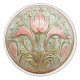 The "Victorian Tulip Charm Ceramic Knob" captures the essence of Art Nouveau design with its intricate and flowing floral patterns. The central motif of a tulip is surrounded by elegant leaves and tendrils, all highlighted with subtle golden outlines that add a touch of luxury. The soft pink petals and lush green foliage create a harmonious and soothing colour palette, set against a gentle background that enhances the overall design. This round knob features a beautifully sculpted pattern, giving it a three-dimensional quality that adds depth and texture. Perfect for those who appreciate the blend of art and utility, this ceramic knob will add a touch of historical elegance and refined beauty to any room.