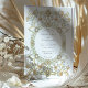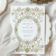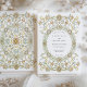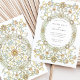 This stunning Victorian/Nouverau-inspired wedding invitation set features a beautifully intricate floral design in soft pastel shades of cream, blush, pale blue, and soft gold. The front showcases a delicate, hand-drawn border with blossoming flowers and swirling leaves, framing your wedding details in an elegant serif font. The back complements the design with an equally detailed floral pattern, creating a cohesive and luxurious look. Perfect for couples looking for a romantic, vintage-inspired theme with a refined touch of Art Deco elegance.